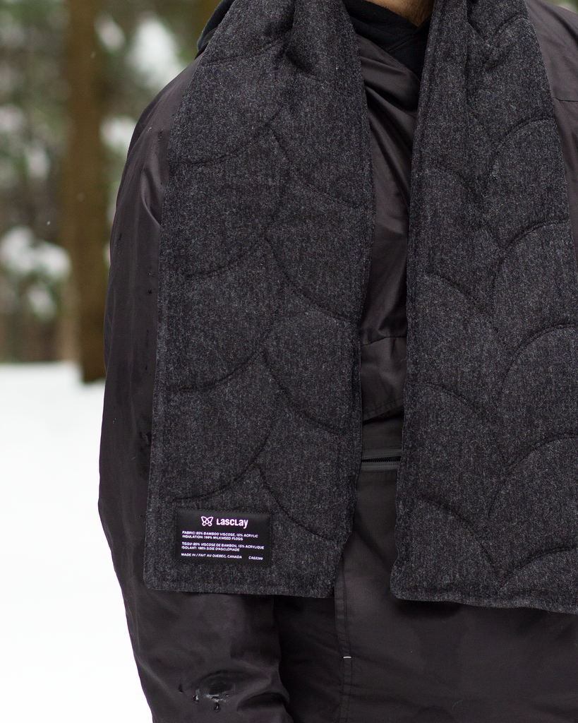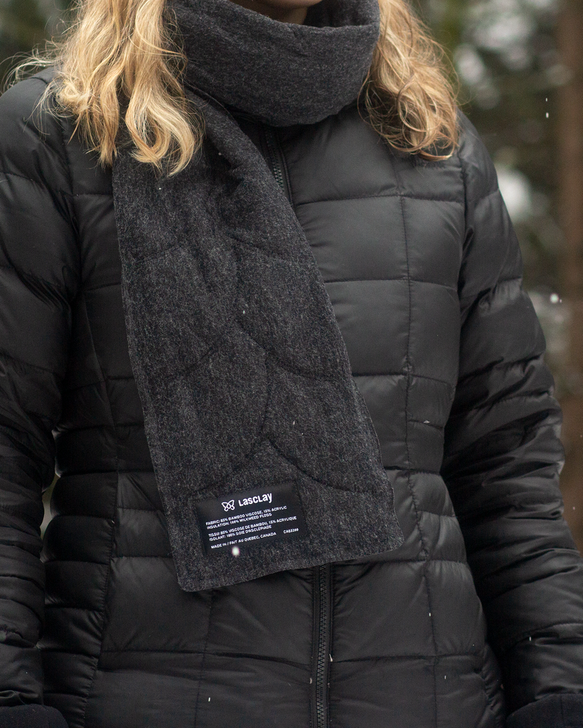 En enveloppant votre cou et votre visage dans ce chaleureux foulard isolé à l'asclépiade, vous vaincrez finalement le vent glacial de nos hivers québécois. Doux, simple et agréable au toucher, le foulard Lasclay, matelassé avec précision et léger comme l'air, vous réchauffera même dans les plus rudes conditions. Maintenant disponible dans 5 couleurs !