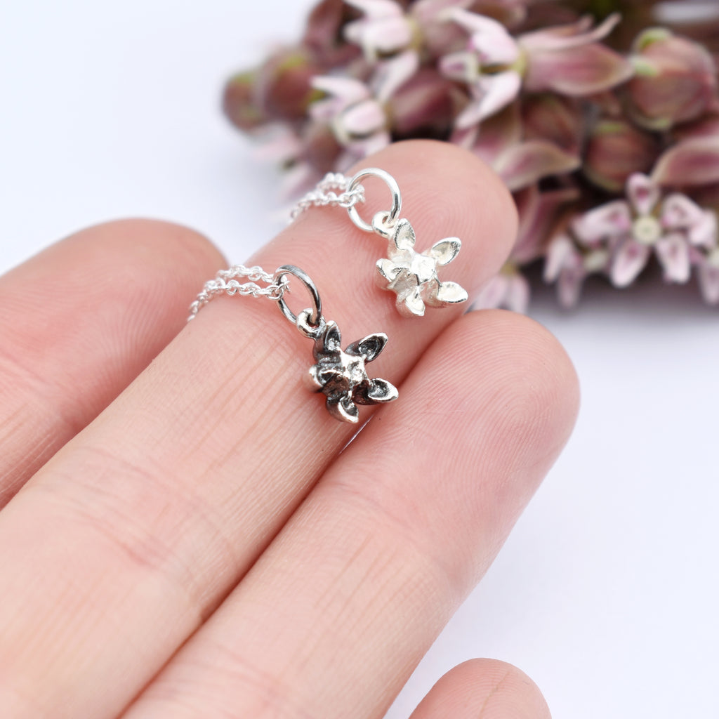 A stunning necklace that lets you showcase your favorite wild flower, milkweed!