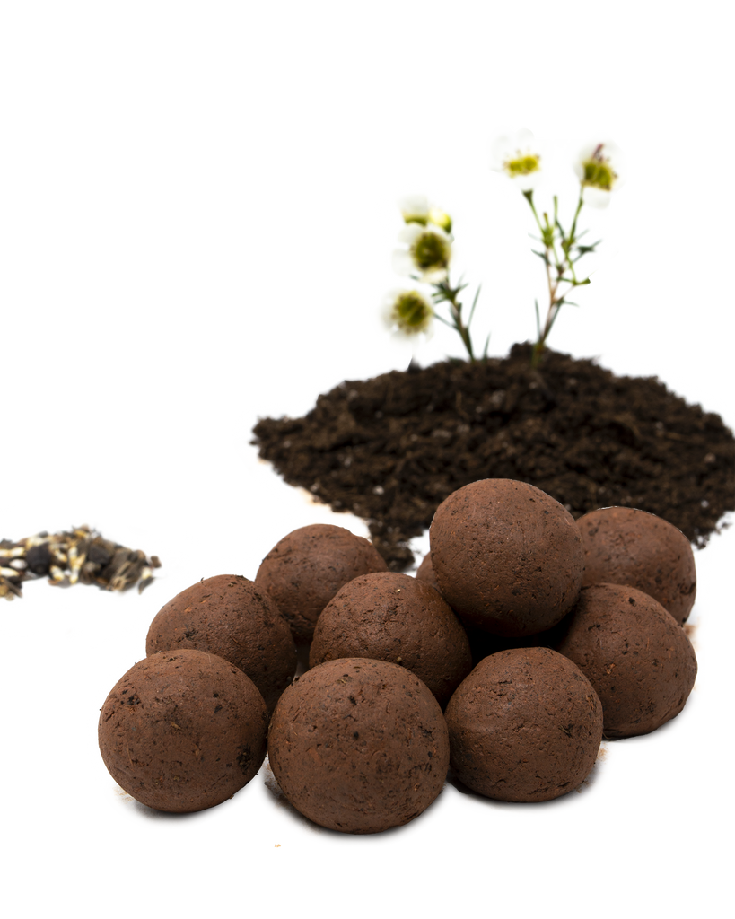 Nos bombes semencières vous arrivent déjà stratifiées à froid et déjà enveloppées de terreau enrichi, d'argile et de compost.