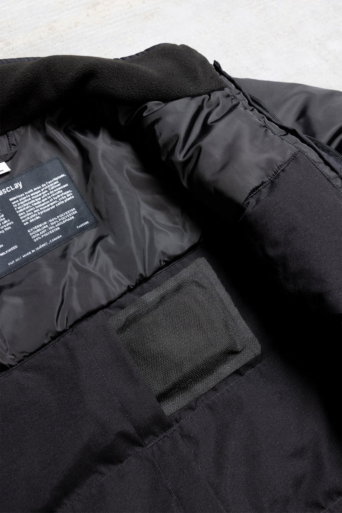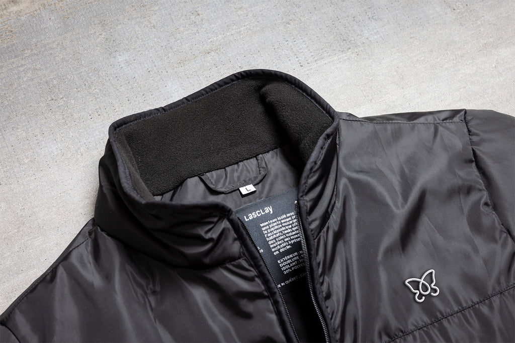 Son secret, une innovation développée par Lasclay: Des coussinets isolants amovibles rembourrés d'asclépiade, qui peuvent être retirés à l'arrivée des températures plus clémentes de l'automne ou du printemps. On peut aussi les remplacer facilement après quelques années s'ils sont tapés ou endommagés, prolongeant ainsi grandement le pouvoir isolant et la longévité du manteau.